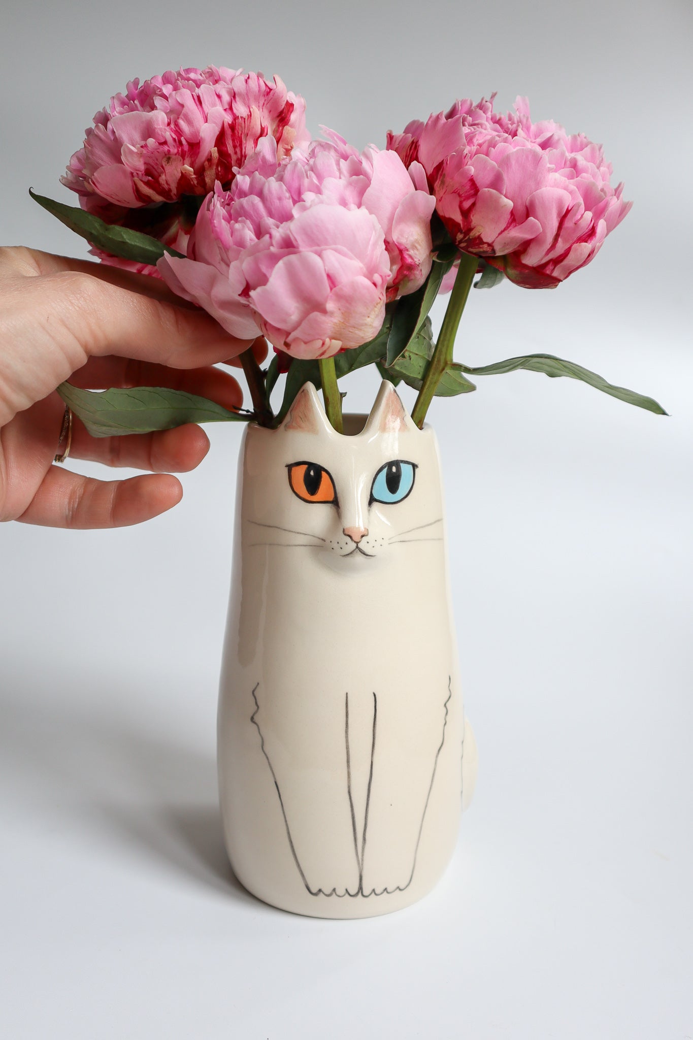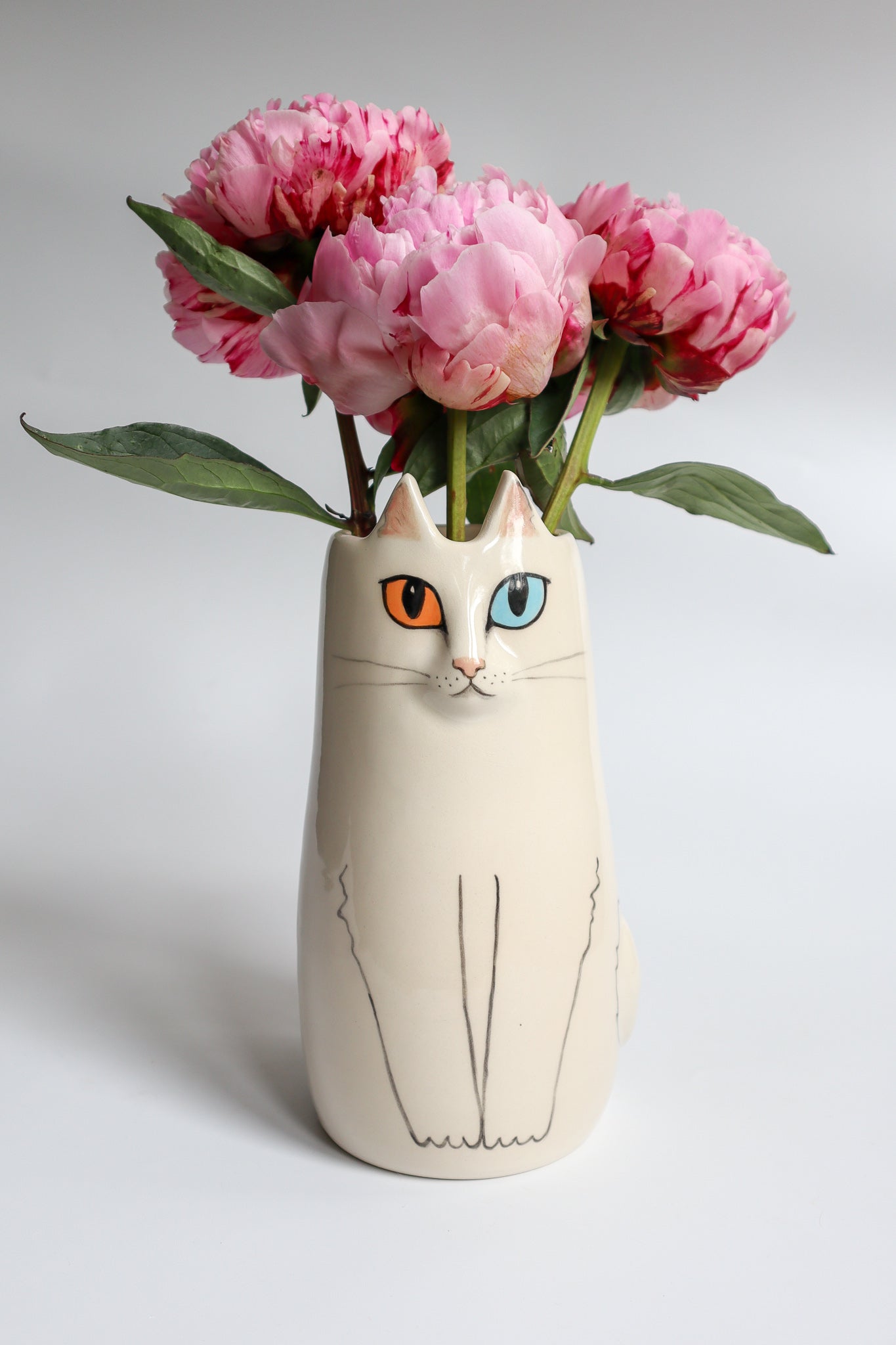 This elegant vase is designed to compliment any interior with her creamy white fur and fun bi-colour eyes.