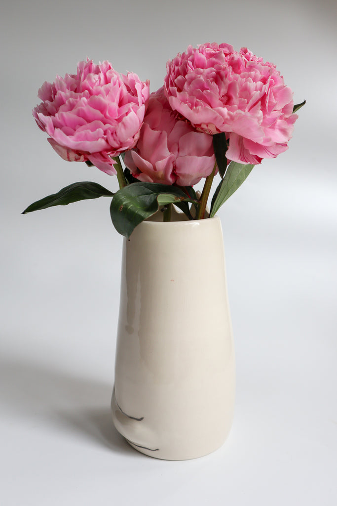 The shape has been thrown on the wheel, with her features added by hand once the vase had been trimmed.